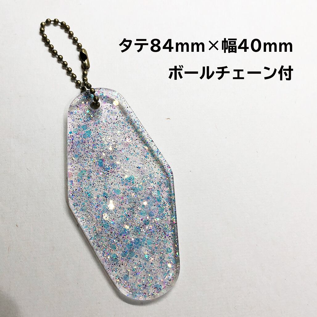 クリアレジンのホテルキー風のタグに、ピンストライプを入れています。